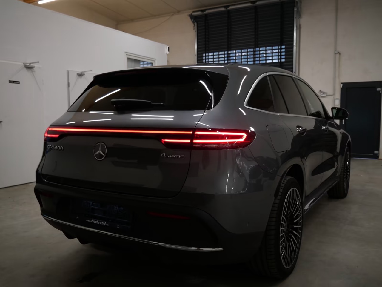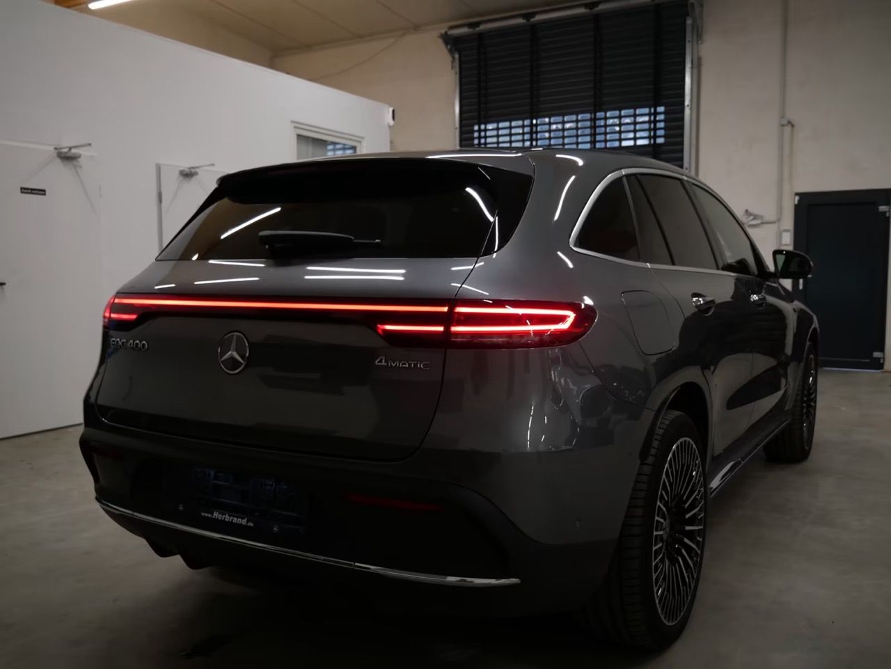 Som AMG Line-udgave fremstår denne EQC med et skarpt og eksklusivt udtryk. Den metalgrå lakering understreger bilens elegante linjer, mens AMG-designelementerne giver et sporty præg.