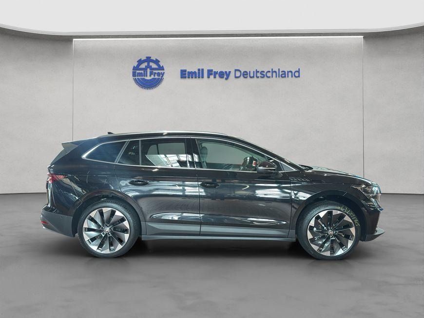 Denne ŠKODA Enyaq iV 80 er et attraktivt tilbud på en fuldt elektrisk SUV, udstyret med den eksklusive “Suite Sport Leder AHK” pakke. Bilen blev første gang indregistreret i maj 2021 og har et kilometertal på 37.610 km. Bilen er en tysk version og angives som værende klar til øjeblikkelig levering.