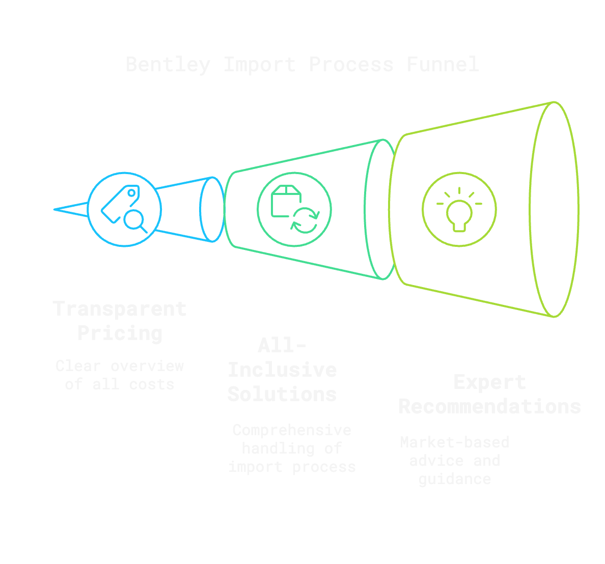 Vores ekspertanbefalinger er baseret på en dybdegående forståelse af markedet og omfattende erfaring med internationale bilimporter. Ved at kombinere konkrete realtidsberegninger med vores brugervenlige service, kan vi tilbyde rådgivning, der guider dig sikkert gennem hele processen, så du både opnår den optimale pris og den højeste kvalitet i importen af din Bentley.