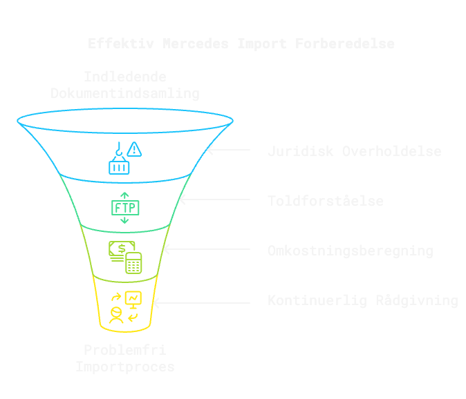 Når du forbereder import af Mercedes, er det afgørende at tage udgangspunkt i en grundig planlægning, hvor vi i IAB sikrer, at du fra starten får den nødvendige vejledning for en korrekt og problemfri proces. Vi anbefaler, at du indsamler alle relevante dokumenter og oplysninger om den ønskede model, da en detaljeret forberedelse gør transitionen fra køb til registrering både sikker og effektiv, især når du benytter vores beregningsværktøj til at få realtidsberegninger af registreringsafgift, moms og told.